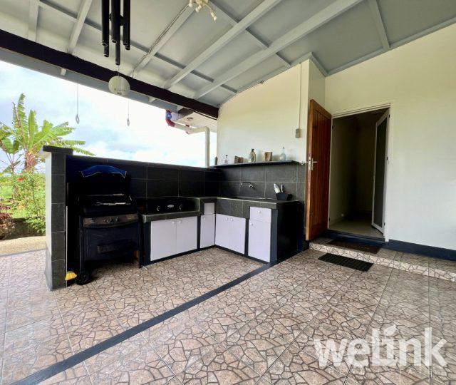 2. Buitenkeuken: kasten, BBQset en gasbrander 2 pits.