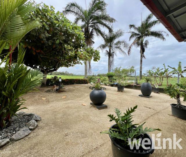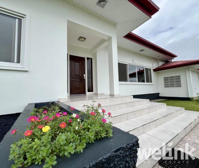 Dit huis bevindt zich aan de Salakpalmlaan, in het prachtige Palm Village-project in Commewijne. Palm Village staat bekend om zijn groene en rustige omgeving, wat het tot een geliefde woonwijk maakt voor mensen die luxe en sereniteit zoeken, zonder al te ver van de levendige stad Paramaribo te wonen. Het project is uitgerust met verharde wegen en straatverlichting, een gesloten rioleringssysteem, waterleidingen en elektriciteit.
