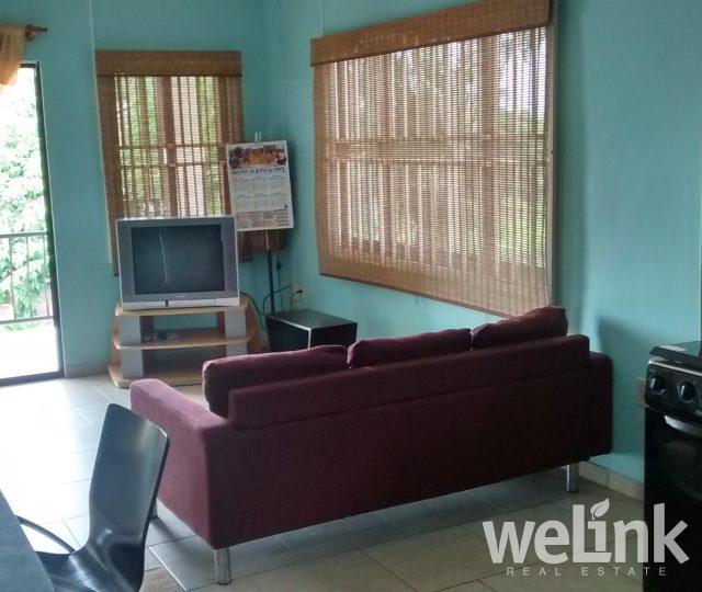 Dit appartementencomplex bestaat uit 4 appartementen en een los huis. Via een zijtrap is dit appartement te bereiken en beschikt over een eigen voordeur. Daarna heb je aan je linkerhand twee ruime slaapkamers, elk voorzien van een air conditioning. De woonkamer met open keuken zijn netjes te noemen en voldoen aan de norm.