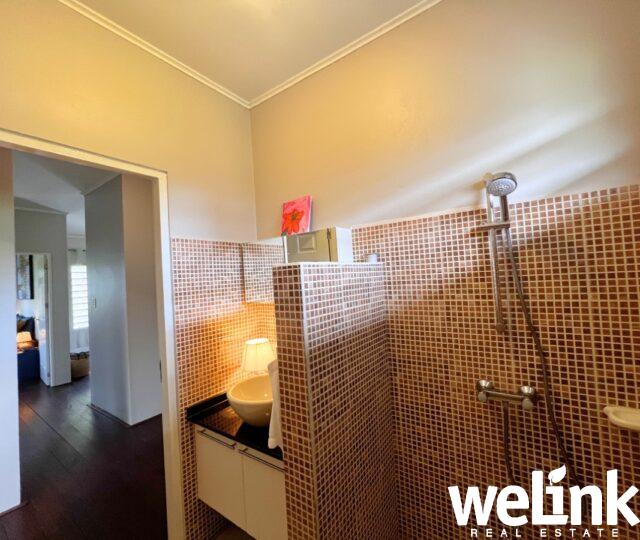 De woning beschikt over twee slaapkamers, waaronder een royale master bedroom met een eigen badkamer, toilet en walk-in closet. De tweede, iets compactere slaapkamer biedt voldoende ruimte voor kastruimte en profiteert van een prettige ochtend lichtinval.