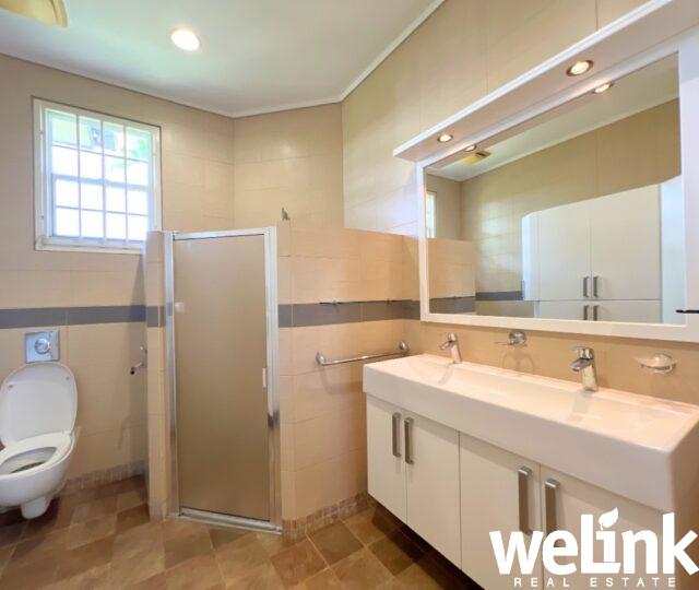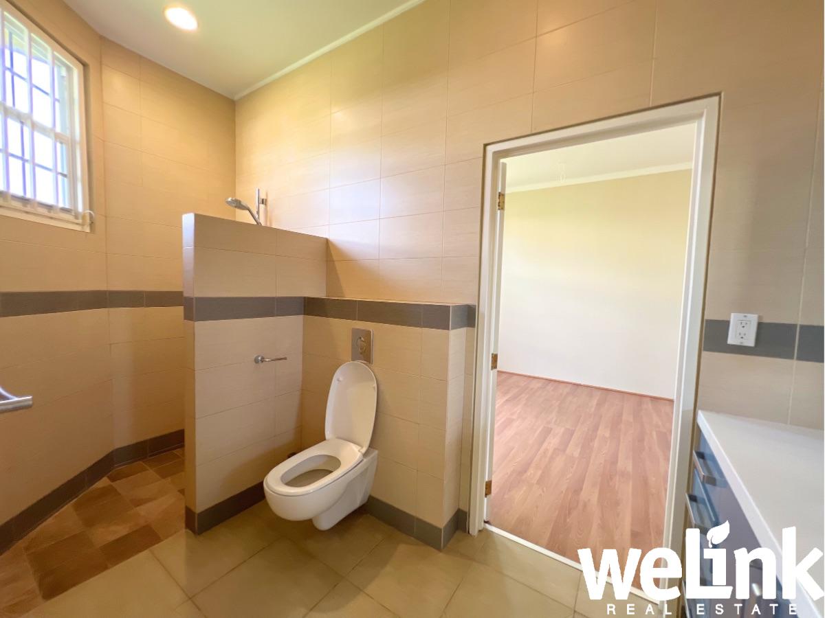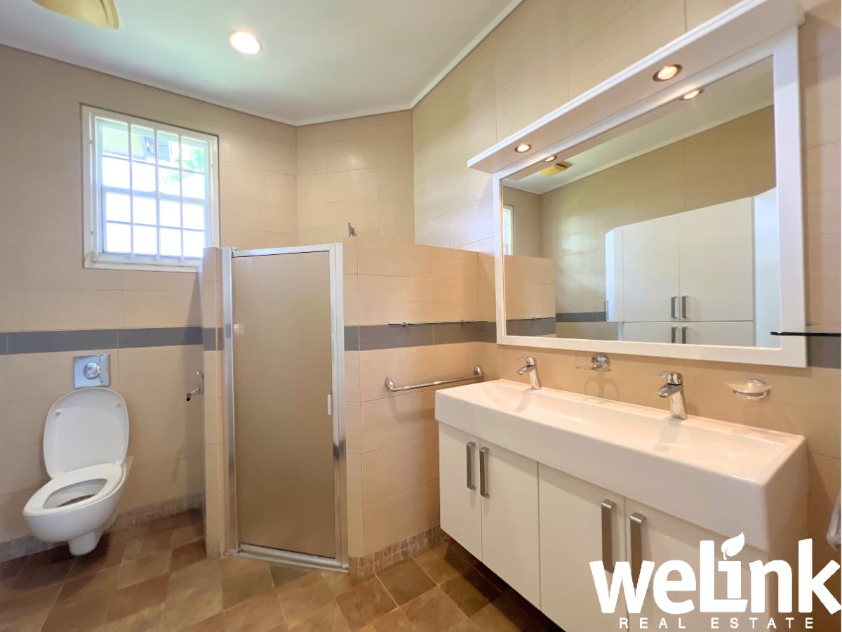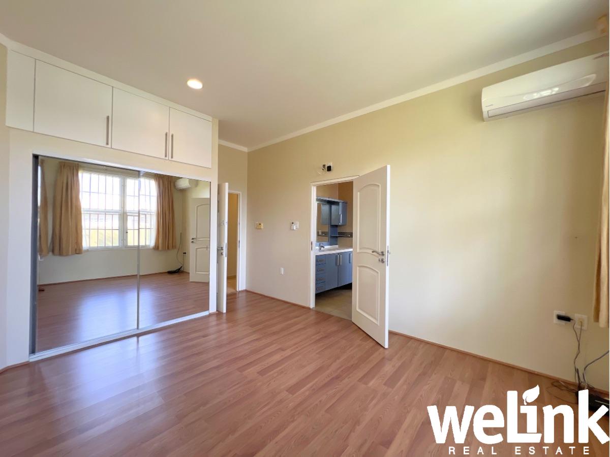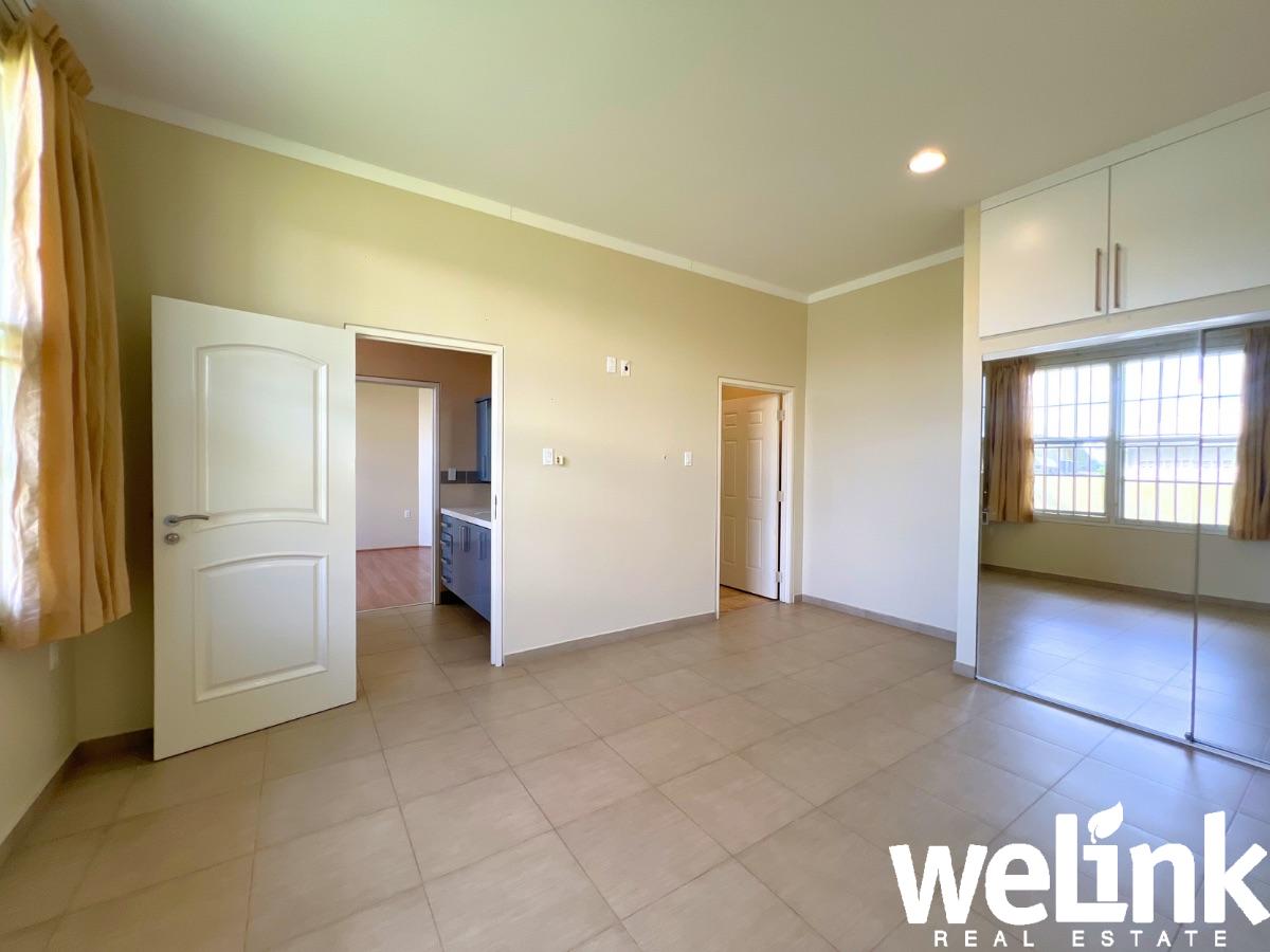 De master bedroom is bijzonder ruim en beschikt over een eigen badkamer en een walk-in closet, wat zorgt voor optimaal comfort en privacy. De twee overige slaapkamers zijn goed bemeten en delen een moderne badkamer in een zogenaamd jack-and-jill concept.