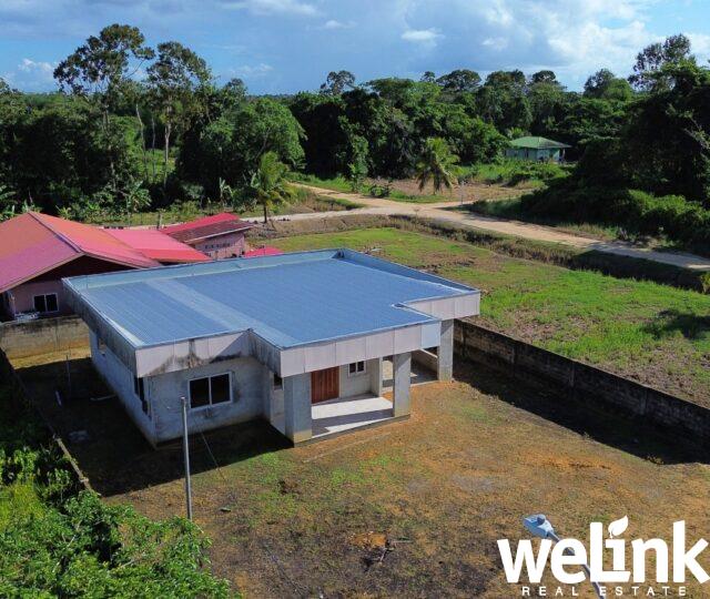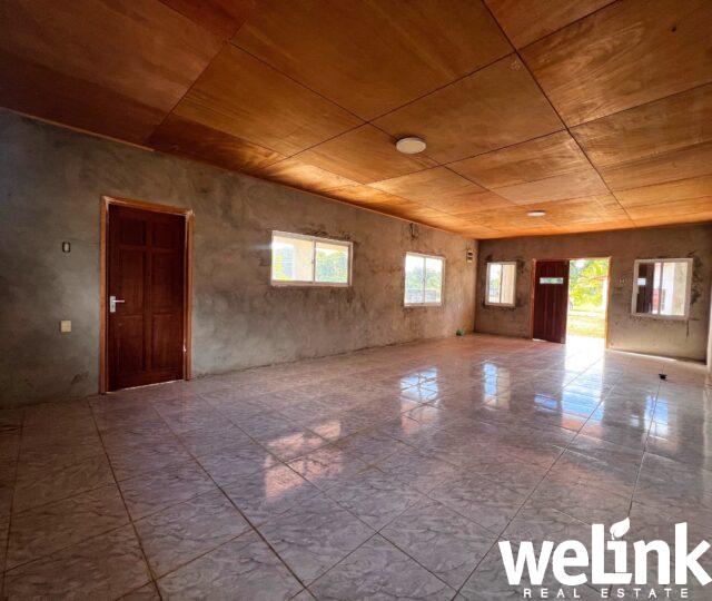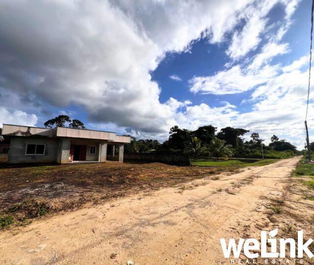 In een rustige en geliefde woonwijk, op een steenworp afstand van Nieuw Amsterdam, aan de Djompo Baskitaweg in Voorburg (district Commewijne), staat deze modern vormgegeven woning. Een unieke kans, mede omdat de woning casco is afgerond en u de mogelijkheid biedt om het interieur volledig naar eigen smaak en ideeën af te werken.