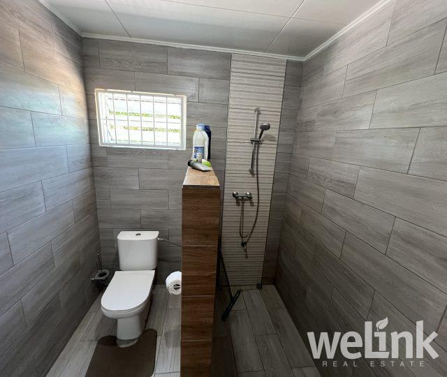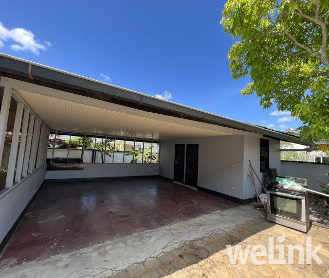 Het ruime achterterras van de woning biedt een ontspannen sfeer en is omgeven door diverse soorten vruchtbomen, waaronder manja-en birambi bomen. Dit creëert een aangename groene omgeving waar je kunt genieten van de buitenlucht. Op het achterterras staat een mooie pergola.