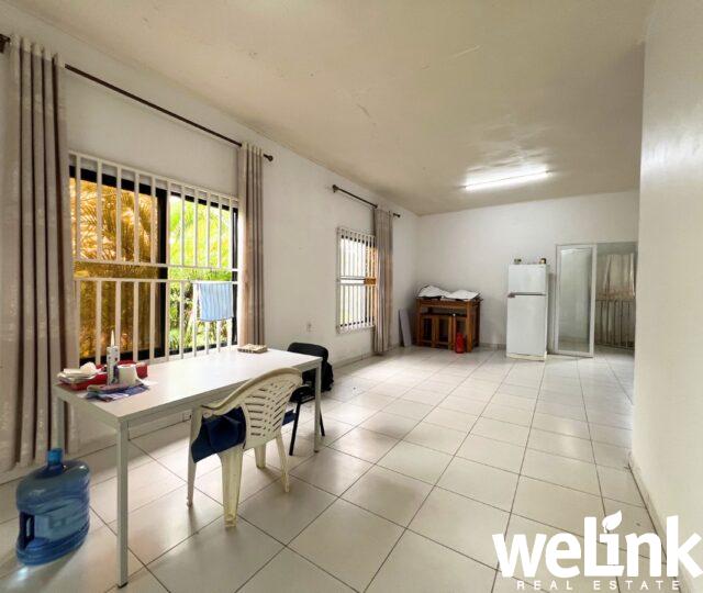 Via de entree betreedt u de woonkamer, een praktische ruimte met voldoende plaats voor zowel een zit- als een eethoek. De rechthoekige indeling maakt een efficiënte inrichting mogelijk.