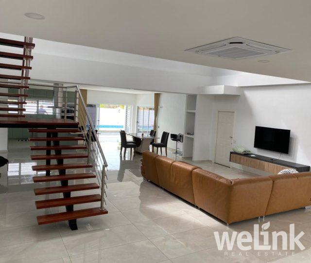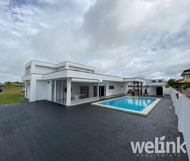 In een zijstraat van de Kwattaweg (ten westen van het Centrum) in een van Paramaribo’s mooiste en populairste gated communities, genaamd Prins Park, is deze luxe woning gelegen. Prins Park is een gated community dat in de jaren 2000 als nieuw woongebied is ontwikkeld. Met zijn dubbele hoofdweg en grote percelen kenmerkt deze woonwijk zich als ruimtelijk, modern en groen. De Kwattaweg is een van Surinames bekendste straten waar van alles te vinden is, zoals: winkels, scholen, restaurants, kappers etc. Op de Kwattaweg rijdt het openbaar vervoer en vanwege de vele zijwegen is het mogelijk spitsmomenten te ontwijken.