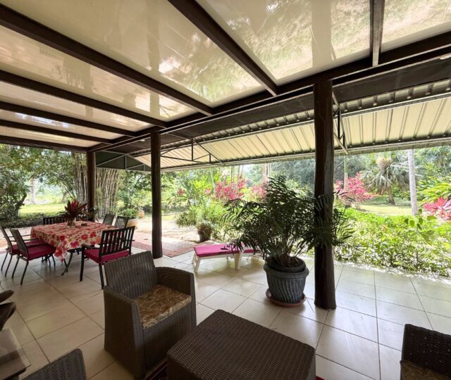Volledig verhuurklaar, met twee slaapkamers, aparte badkamer, ruime keuken en woonkamer. Het grote overdekte terras biedt uitzicht op de tuin – ideaal voor toeristen, expats of langverblijvers.
