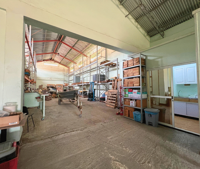 De ruimte is geschikt voor gebruik als opslagruimte, werkplaats, kantoor of kleinschalige productie-eenheid.