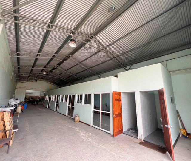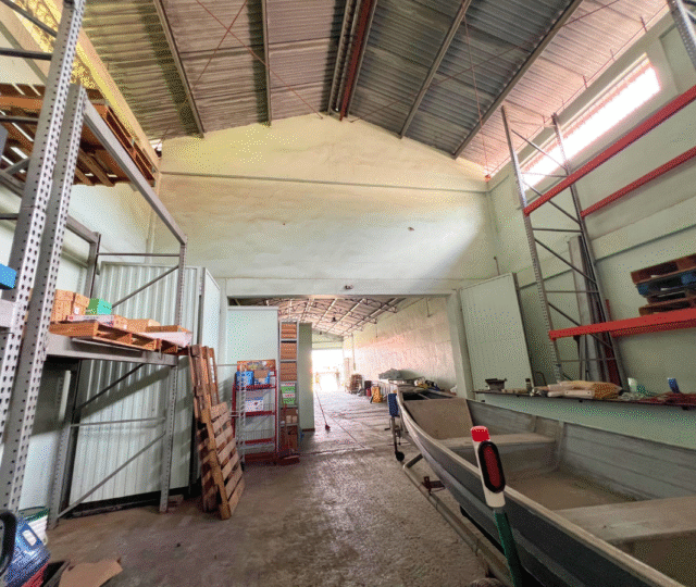 De loods heeft een oppervlakte van circa 308,25 m² (7,50 m breed x 41,10 m diep) en is praktisch ingericht met: Vier kantoorruimtes elk voorzien van airconditioning, twee toiletten, een keukenruimte en een alarmsysteem.
