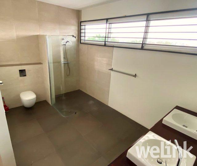 Deze luxe woning staat in één van Paramaribo’s populairste buurten, in een zijstraat van de Johannes Mungrastraat (ten westen van het stadscentrum).